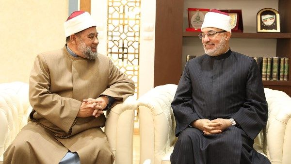 استقبل فضيلة أ.د. نظير محمد عياد، مفتي الجمهورية، رئيس الأمانة العامة لدور وهيئات الإفتاء في العالم، اليوم الخميس، وفدًا من قيادات المنظمة العالمية لخريجي الأزهر بتايلاند؛ حيث ضم الوفد الشيخ مبروك يونس، رئيس المنظمة العالمية لخريجي الأزهر في تايلاند، والشيخ عبد مناف أحمد حسين، نائب رئيس المنظمة العالمية بتايلاند.