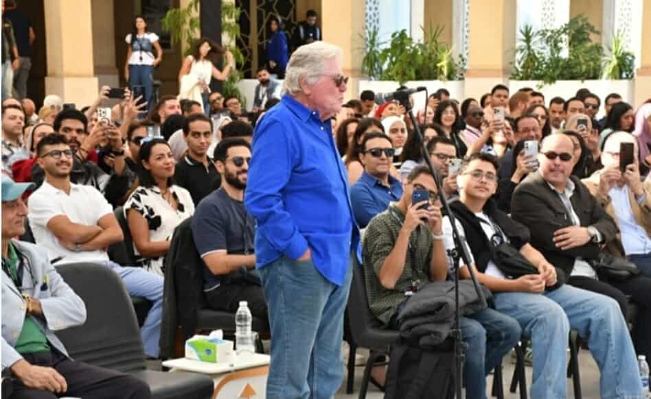 حضر كل من الفنان حسين فهمي والفنانة لبلبة وإلهام شاهين، ندوة المخرج محمد عبدالعزيز، المقامة في أول أيام فعاليات مهرجان القاهرة السينمائي الدولي بدورته الـ46، في المسرح المكشوف بدار الأوبرا المصرية وأدار الحوار الناقد أسامة عبد الفتاح.