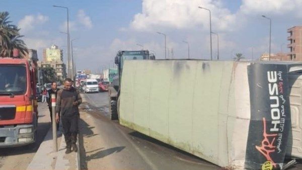 وعلى الفور انتقلت قوات الحماية المدنية وسيارات الإسعاف ووحدات المرور إلى موقع البلاغ، وتبين من المعاينة الأولية أن السيارة كانت محملة بصندوق معدني ضخم يُقدّر وزنه بنحو 6 أطنان، ما أدى إلى انقلابها على جانب الطريق نتيجة اختلال توازن الحمولة أثناء السير، وتم نقل السائق إلى مستشفى كفر شكر المركزي لتلقي العلاج اللازم، وطمأن مصدر طبي بأن حالته مستقرة، ولا توجد إصابات أخرى.