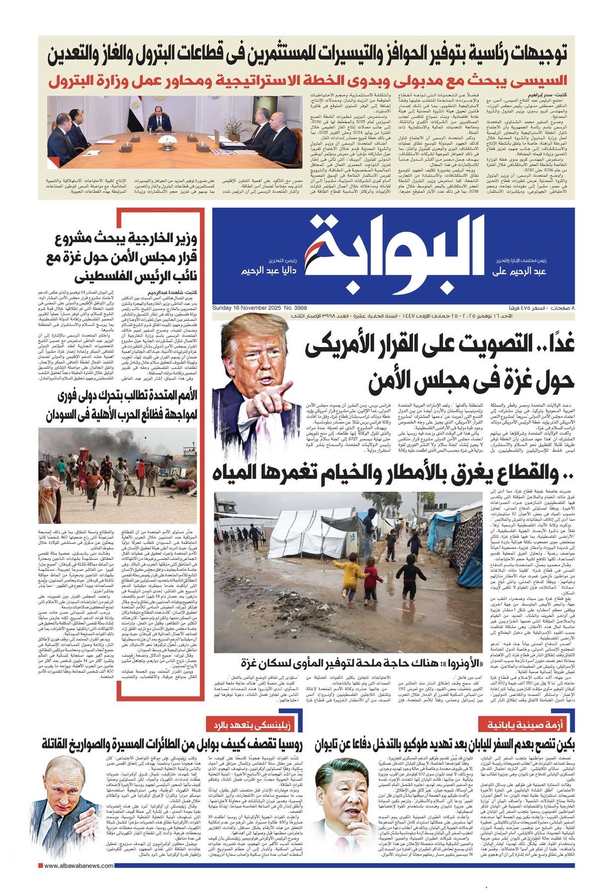 تقرأ غدًا في العدد الجديد من جريدة «البوابة»، الصادر بتاريخ الأحد 16 نوفمبر 2025، مجموعة من الموضوعات والانفرادات المهمة، ومنها: