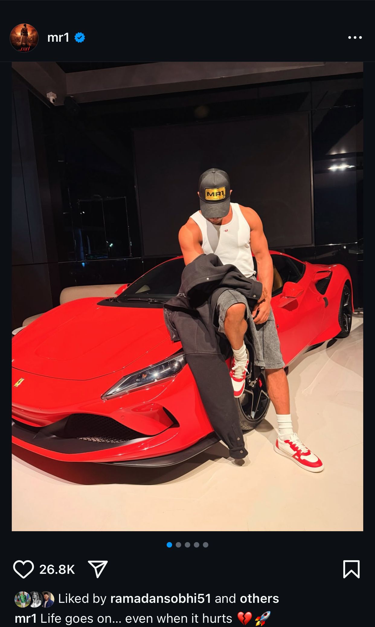 شارك الفنان محمد رمضان، صور جديدة له عبر حسابه الشخصي بموقع إنستجرام، وذلك بعد وفاة والده منذ أيام قليلة، وعلق عليها قائلاً: "الحياة تستمر، حتى لو كانت مؤلمة ".