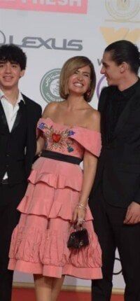 وظهرت هنا شيحة برفقة نجليها على الريد كاربت مرتدية فستان وردي جذاب مكشوف الكتفين، خطفت به أنظار الجمهور والحضور والمصورين الذين التقطوا لها صور متنوعة.